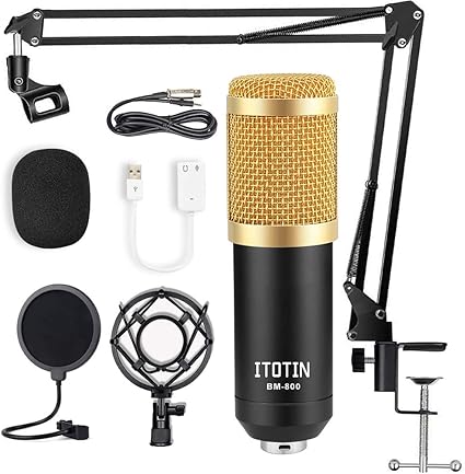 Amazon Com Ankuka Usb Streaming Podcast Pc Microphone Professional Studio Cardioid Condenser Mic Kit With Sound Card Boom Arm Shock Mount Pop Filter For Skype Youtuber Gaming Recording Home Audio Theater