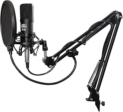 Amazon Com Axcessables Mx 100 Professional Cardioid Studio Condenser Mic Bundle With Shock Mount Desktop Mount Mic Swivel Boom Arm Pop Filter Cable Ideal For Studio Recording Broadcasting Home Audio