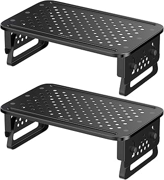 Amazon Com Monitor Stand Computer Riser Desk Storage Organizer Height Adjustable Shelf For Printer Laptop Screens Up To 24 Inches Black 2 Pack Office Products