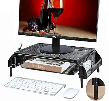 Monitor stand riser 3 height adjustable monitor stand for laptop computer imac pc printer desktop ergonomic metal monitor riser stand with mesh platform for airflow by huanuo. The desk has ample room on its top is easy to raise and lower and it s suitable for folks of varying heights. My computer monitor riser can adjust forward 0 15 degree to put the computer comfortable position height adjustable.