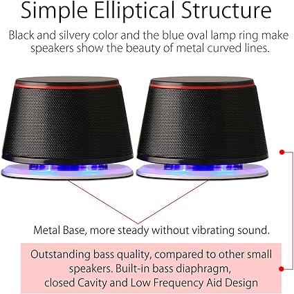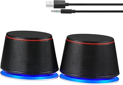 Amazon Com Enhance Sb2 Computer Speakers With Blue Led Lighting 2 0 Usb Powered Stereo Work From Home Speaker Loud Sound With 3 5mm Aux And Volume Control Compatible With Gaming Desktop Pc Laptop