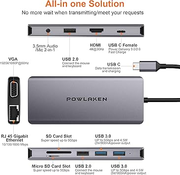 Buy updated 2019 version usb c hub powlaken 11 in 1 usb c adapter with ethernet 4k usb c to hdmi vga 2 usb3 0 2 usb2 0 pd sd tf card reader audio mic compatible mac pro and other type c laptops online on amazon ae at best prices. Updated version usb c hub powlaken 11 in 1 usb c adapter with ethernet 4k usb c to hdmi vga 2 usb3 0 2 usb2 0 pd sd tf card reader audio compatible mac pro and other type c laptops description extensive capability. Built in updated 2019 version advanced lt8712x chip.